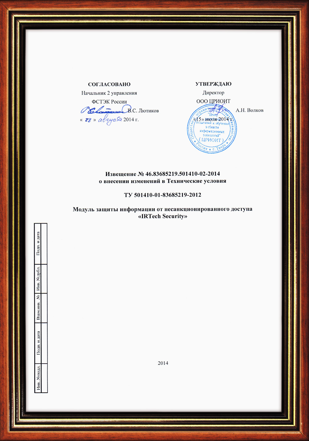 | 2011 год | Модуль «IRTech Security» (сертификат ФСТЭК № 2813 от 15.01.2013 г.) Электронные сервисы для интеграции со СМЭВ, ЕПГУ/РПГУ Реализация государственных и муниципальных услуг в электронном виде в сфере образования |