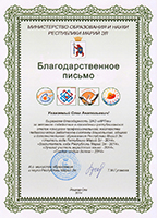 Благодарность за разработку АИС “Е-услуги. Образование” от Управления образования администрации г. Чебоксары за качественную работу по разработке и техническому сопровождению системы “Е-услуги. Образование”, 20.03.2017.